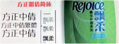 例如,方正對外提供四款免費(fèi)字體:楷體、黑體、仿宋、書宋。下圖中的粗倩簡體,是享有版權(quán)的,“飄柔”商標(biāo)因使用該字體,遭到方正公司起訴。