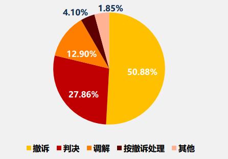 知識產權侵權案件的結案方式以撤訴為主,占比50.88%。