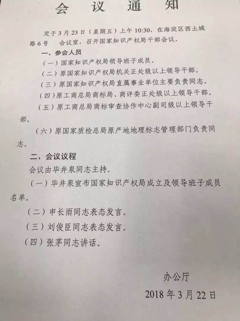 據悉,今天,新組建的國家知識產權局宣告成立。