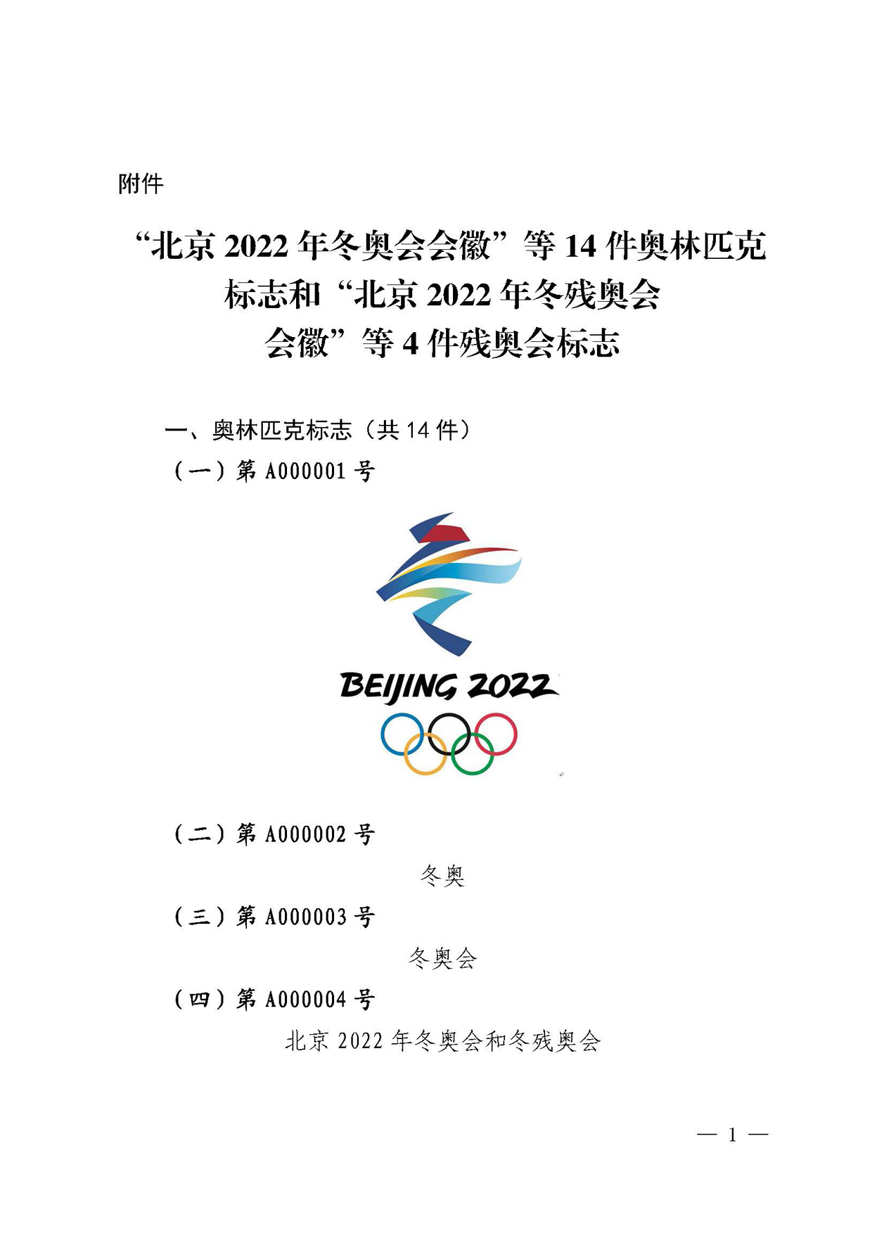 附件:“北京2022年冬奧會會徽”等14件奧林匹克標志和“北京2022年冬殘奧會會徽”等4件殘奧會標志